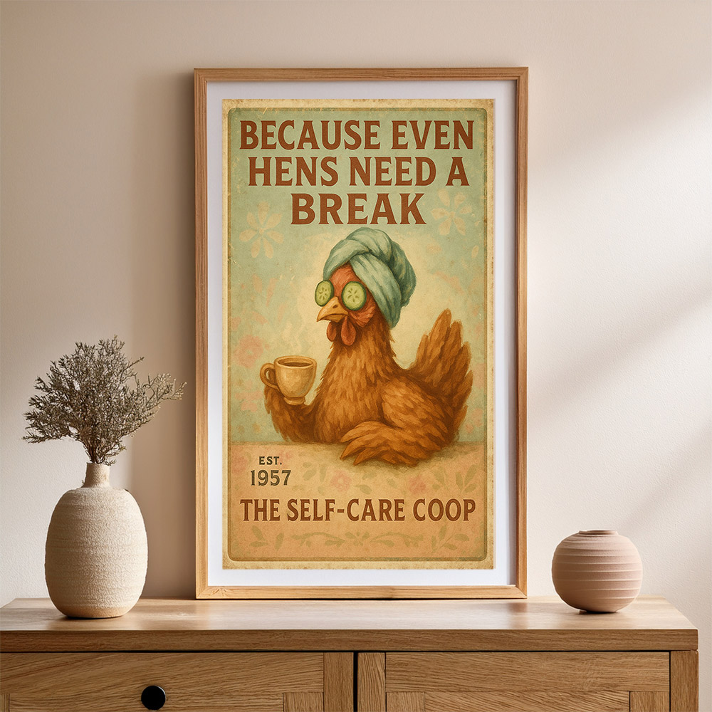 For those who enjoy decor that feels personal, this piece also works beautifully as vintage chicken humor wall art. It blends effortlessly into kitchens, living rooms, or cozy corners where life feels unhurried. The artwork feels less like something purchased and more like something discovered over time.